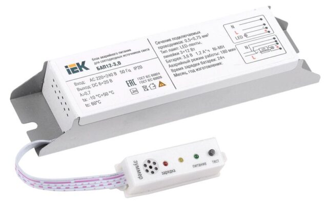 Блок аварийного питания БАП12-3.0 от IEK — это надежное решение для обеспечения непрерывной работы светодиодного освещения. Он гарантирует автоматический переход в аварийный режим при отключении или просадке напряжения в основной сети 230В, поддерживая безопасность и эвакуационное освещение.