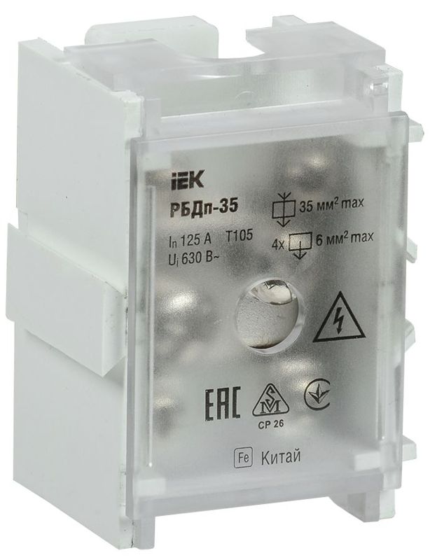 С пятью подключениями (1 на 35 мм² и 4 на 6 мм²) и номинальным током 125/50А, этот блок представляет собой оптимальное сочетание функциональности, безопасности и долговечности от проверенного бренда IEK.