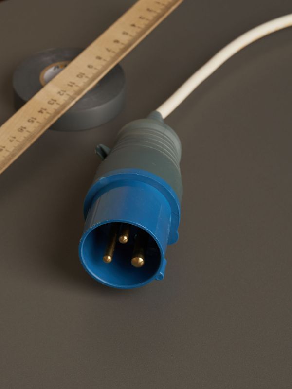 Конструкция вилки включает три полюса (2P+PE) для обеспечения заземления, что повышает безопасность работы. Винтовые клеммы обеспечивают простое и надежное подключение кабеля, а уплотнительная гайка кабельного ввода надежно защищает место соединения. Прочный пластиковый корпус рассчитан на интенсивное использование.
