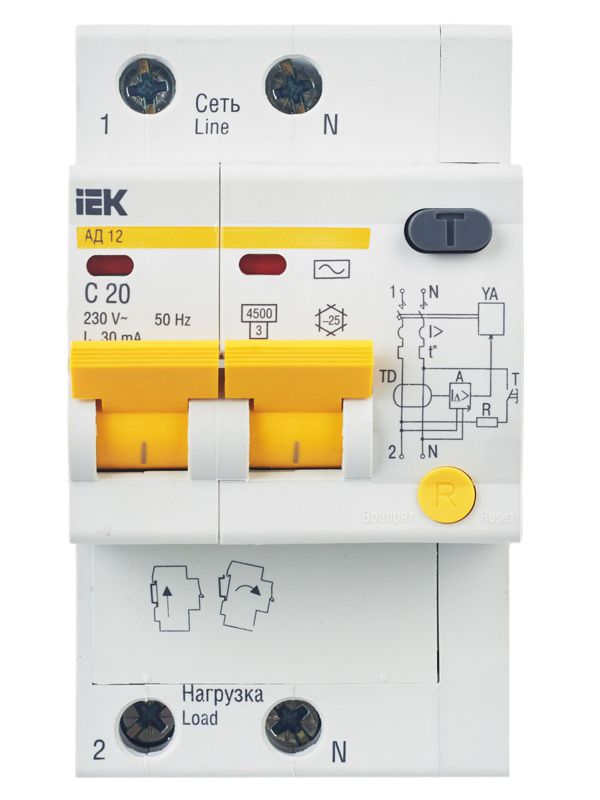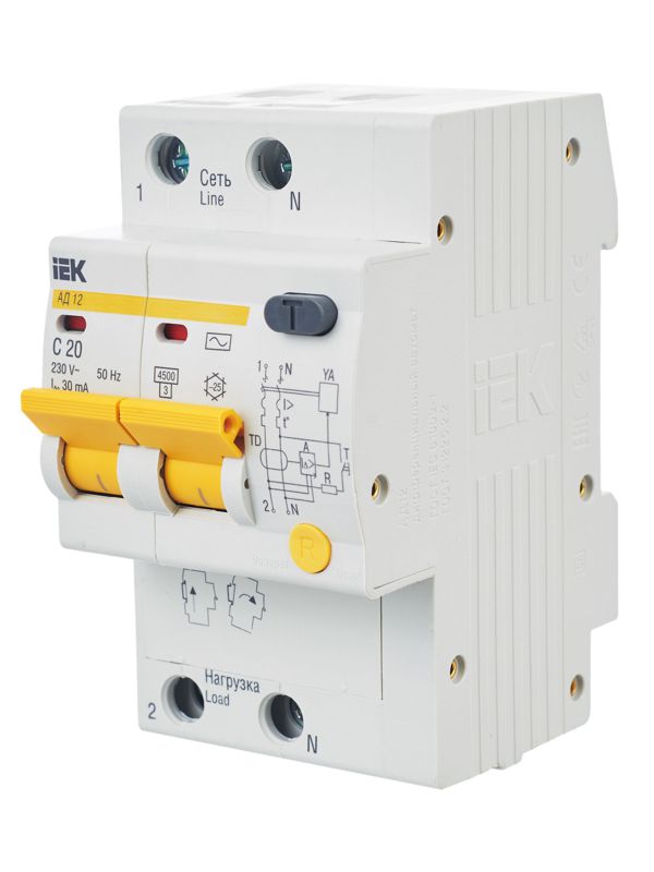 Автоматический выключатель дифференциального тока IEK серии KARAT АД-12 — это современное устройство, объединяющее в себе функции защиты от токов утечки, перегрузки и короткого замыкания. Модель MAD10-2-020-C-030 с номинальным током 20А и чувствительностью 30 мА обеспечивает комплексную безопасность вашей электросети и людей.