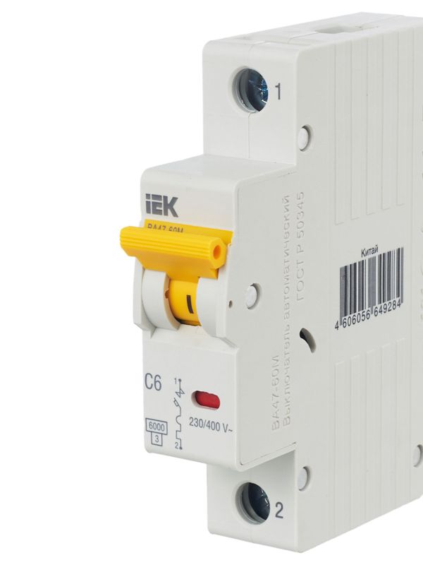 Автоматический выключатель IEK соответствует стандарту IEC 60898, подтверждая высокое качество и надежность бренда. Это проверенное решение для повседневных задач электромонтажа, где важны безопасность, долговечность и простота использования.