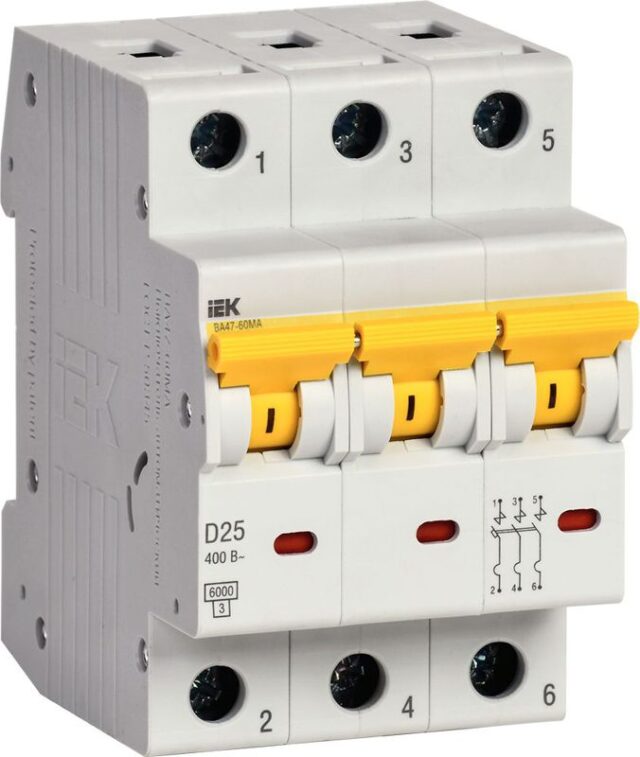 Автоматический выключатель модульный IEK 3-полюсный 25А с характеристикой D — это надежное решение для защиты электрических цепей от токов короткого замыкания. Аппарат серии MVA33-3-025-D, рассчитанный на номинальное напряжение до 400 В, обеспечивает мгновенное отключение при аварийных ситуациях, гарантируя безопасность электроустановки.