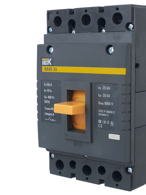 Профессиональный автоматический выключатель ВА88-35 KARAT от IEK на номинальный ток 160А предназначен для надежной защиты трехфазных электрических цепей промышленного и коммерческого назначения. Его высокая отключающая способность 35 кА при напряжении 400 В гарантирует мгновенное обесточивание сети в случае короткого замыкания, предотвращая выход из строя дорогостоящего оборудования и минимизируя риски возгорания.