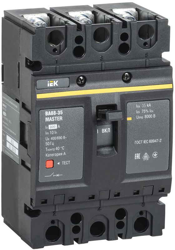Автоматический выключатель ВА88-35 MASTER от IEK — это надежный трехполюсный аппарат на 200А, предназначенный для комплексной защиты промышленных и коммерческих электросетей. Его высокая отключающая способность 35кА гарантирует безопасность при коротких замыканиях, а номинальное напряжение до 690В делает его универсальным решением для современных электроустановок.