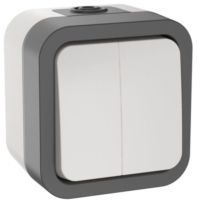 Надежный двухклавишный выключатель открытой установки IEK TORS TS205 создан для работы в сложных условиях. Степень защиты IP55 гарантирует полную защиту от пыли и струй воды, что делает его идеальным решением для влажных и запыленных помещений, а также для уличного монтажа.
