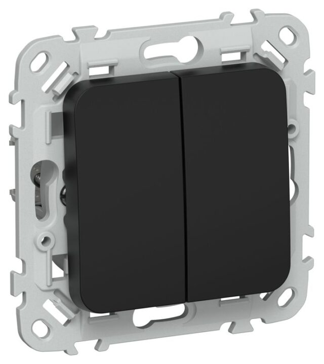 Двухклавишный выключатель скрытого монтажа IEK серии FLITE — это идеальное сочетание современного дизайна и проверенной надёжности для вашего дома или офиса. Модель ВС12-1-0-ФлЧ с элегантным чёрным механизмом разработана для удобного управления двумя группами освещения с номинальным током 10А.