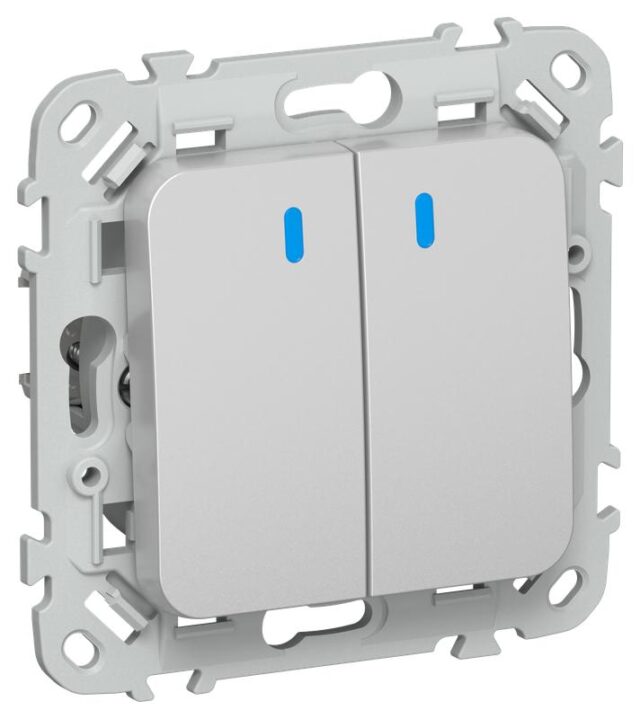 Ключевые преимущества выключателя — наличие световой индикации, которая помогает легко найти его в темноте, и стильный корпус цвета алюминий из ударопрочного пластика. Изделие относится к серии FLITE, известной утонченными пастельными тонами и декоративной поверхностью, что позволяет гармонично вписать его в любой интерьер. Степень защиты IP20 обеспечивает безопасную эксплуатацию в сухих помещениях.