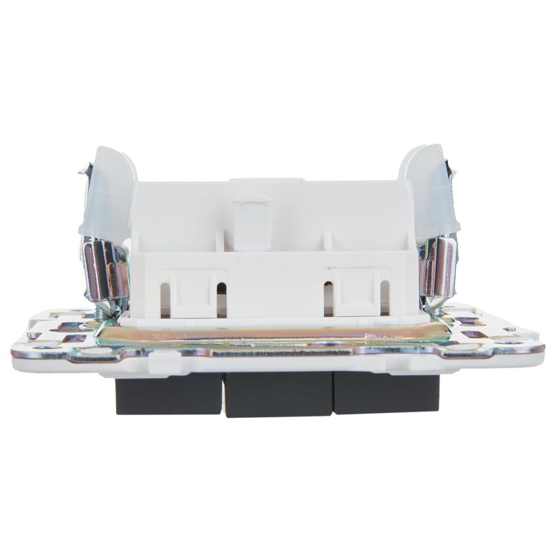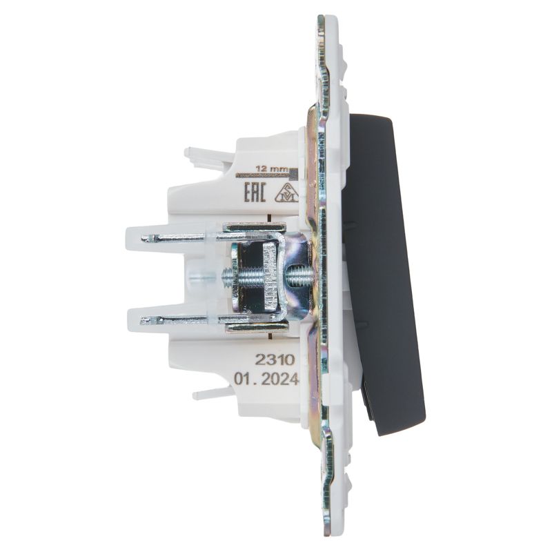 Ключевые преимущества выключателя включают корпус из ударопрочного и устойчивого к УФ-излучению поликарбоната, что гарантирует сохранение цвета и целостности на протяжении многих лет. Луженая контактная группа с серебряными накладками обеспечивает минимальное переходное сопротивление и надежную коммутацию. Самозажимные клеммы значительно ускоряют и упрощают процесс установки, а двойной изолированный суппорт с системой «ласточкин хвост» обеспечивает прочное крепление в многопостовые рамки серии.