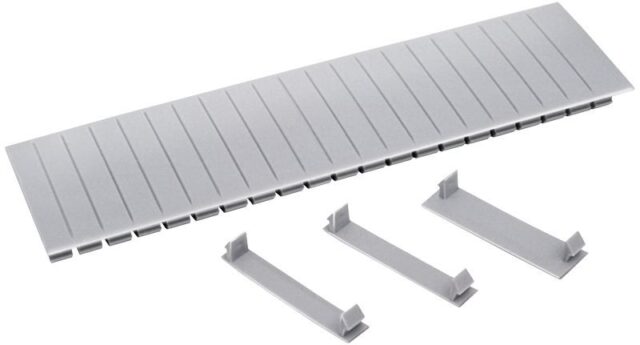 Заглушка изготовлена из прочного пластика серого цвета, который гармонично сочетается с большинством современных электрощитовых изделий IEK. Ее компактная высота в 5.1 мм позволяет выполнить монтаж без затруднений, а универсальное исполнение делает ее идеальным выбором для финишной отделки.