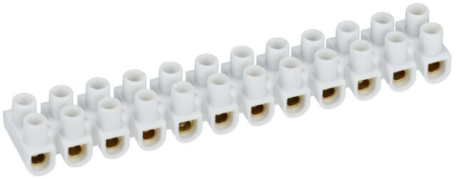 Клеммная колодка предназначена для соединения однопроволочных и многопроволочных проводников сечением от 4 до 10 мм². Она идеально подходит для монтажа в распределительных щитах, панелях управления и других электроустановках, где требуется компактное и упорядоченное подключение на 12 пар полюсов.