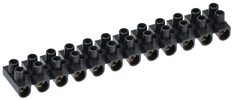 Изделие предназначено для соединения однопроволочных и многопроволочных проводников сечением от 1.5 до 4.0 кв.мм. Благодаря компактной 12-полюсной конструкции с двумя клеммами на полюс, оно идеально подходит для упорядочивания проводки, маркировки цепей и создания перемычек в промышленных и бытовых электроустановках.