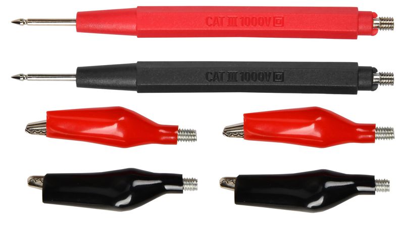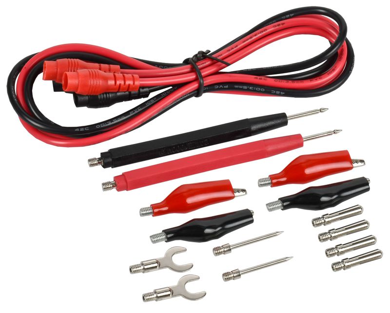 Комплект является неотъемлемой частью мультиметра и предназначен для измерения ключевых параметров цепи. Щупы длиной 750 мм обеспечивают удобный доступ к точкам измерения, позволяя проводить диагностику и обслуживание электрооборудования с соблюдением необходимой дистанции и безопасности.