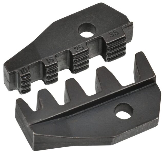 Матрица предназначена для опрессовки изолированных кабельных соединений с поперечным сечением от 10 до 35 мм². Её конструкция с четырьмя гнёздами в губках позволяет эффективно работать с различными типами наконечников, что делает её незаменимой при электромонтажных работах любого масштаба.