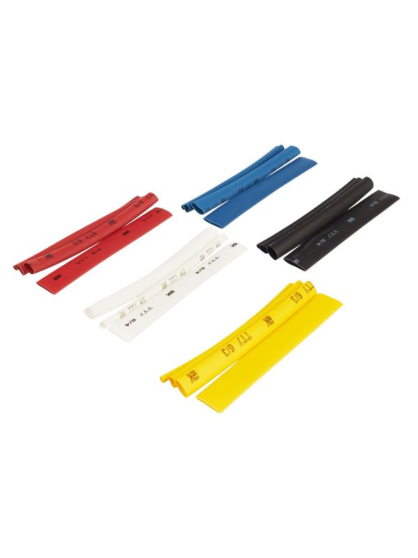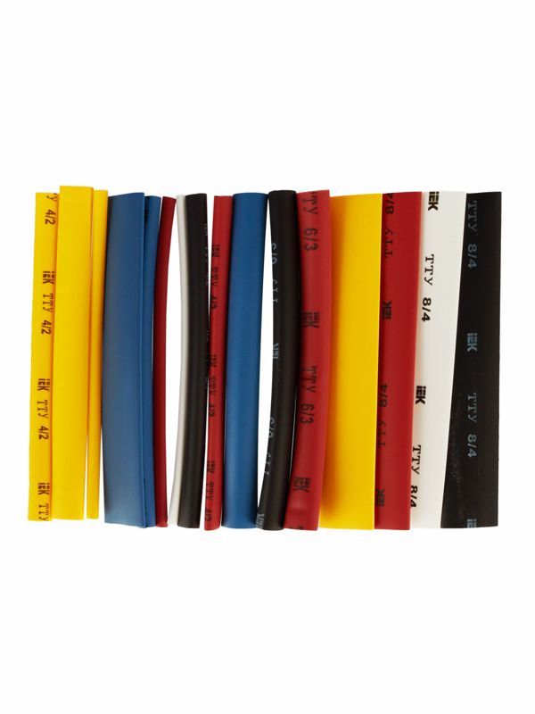 Изделия изготовлены из не содержащего галогенов материала, обладающего свойством самозатухания, что повышает пожарную безопасность. Коэффициент усадки 2:1 обеспечивает плотное облегание и надежную фиксацию на соединении. Набор включает трубки диаметром от 2 до 8 мм в пяти различных цветах (желтый, синий, красный, черный, белый), что позволяет покрыть большинство типовых задач.