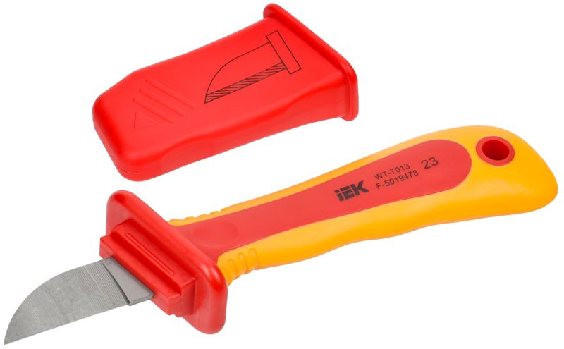 Инструмент предназначен для резки и снятия оболочки с кабелей. Его ключевой особенностью является возможность работы под напряжением до 1000 В, что делает его незаменимым для монтажа и обслуживания действующих электроустановок. Прямолинейное лезвие длиной 50 мм отлично справляется с кабелями различного сечения.