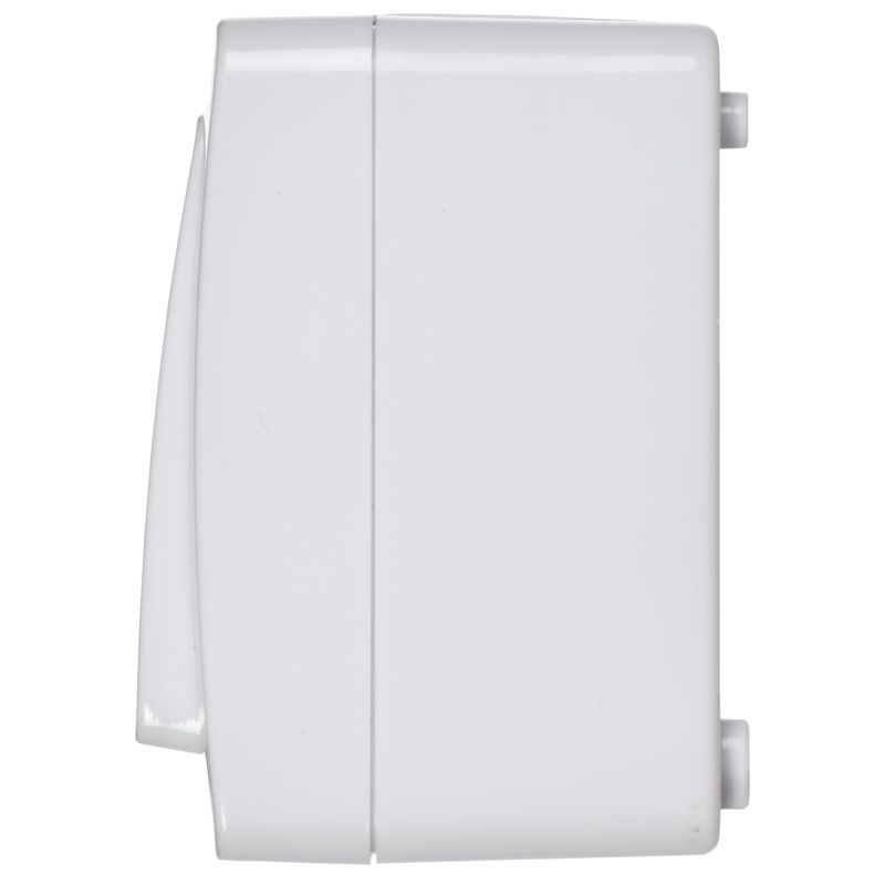 Ключевыми преимуществами переключателя являются его прочный корпус из термопласта, выполненный в классическом белом цвете, и удобная одноклавишная конструкция для открытого монтажа. Модель поставляется в виде готового к установке основного элемента с корпусом в сборе, что упрощает монтаж.