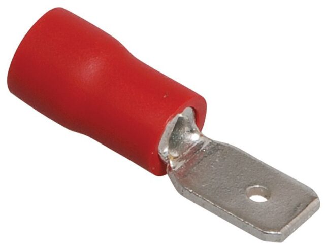 Ключевые преимущества включают латунный контакт, обеспечивающий высокую проводимость и коррозионную стойкость, а также частичную изоляцию из ПВХ для безопасности. Исполнение "штекер" (папа) и компактный дизайн делают монтаж простым, а соединение — долговечным и виброустойчивым.