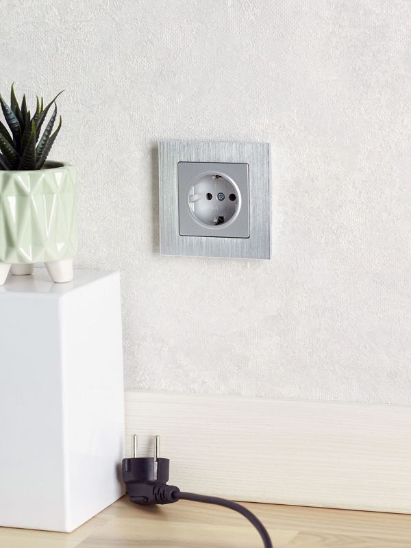 Ключевые преимущества включают прочную металлическую конструкцию, устойчивую к механическим воздействиям, и блестящую поверхность «алюминий», которая легко очищается. Технология крепления введением фиксатора в паз гарантирует быстрый, простой и надежный монтаж. Степень защиты IP20 указывает на предназначение для использования в сухих внутренних помещениях.