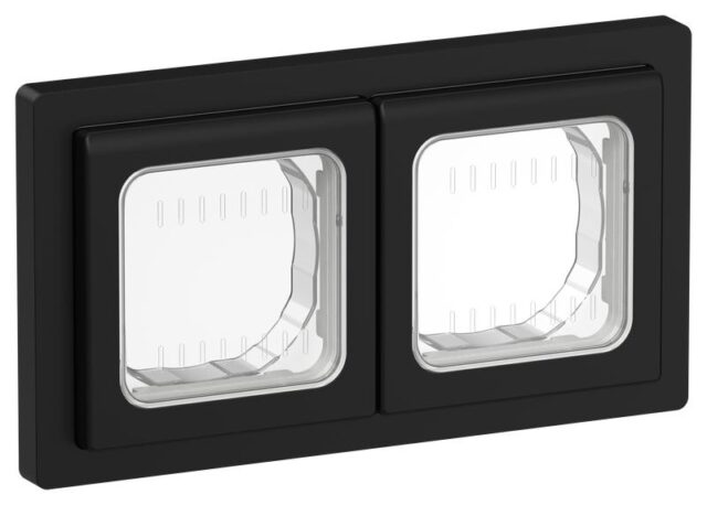 Универсальная рамка предназначена для монтажа двух электроустановочных изделий (розеток, выключателей) в стандартный двухпостовой блок. Ее ключевая особенность — откидная крышка, которая обеспечивает легкий доступ к устройствам для обслуживания, сохраняя при этом высокий уровень защиты. Конструкция позволяет выполнять монтаж как горизонтально, так и вертикально, что обеспечивает гибкость при планировании электроточек.