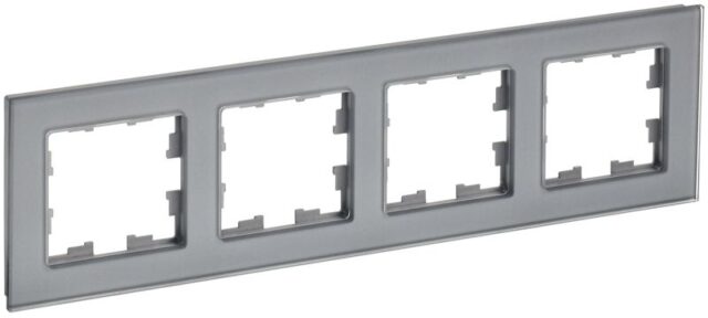 Стильная рамка IEK BRITE на 4 места – это современное решение для организации электроустановочных устройств в едином стиле. Изготовленная из прочного стекла серого цвета с блестящей поверхностью, она придает интерьеру лаконичный и технологичный вид, сочетая эстетику с надежностью.