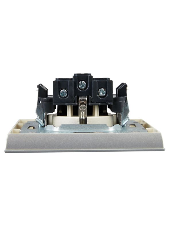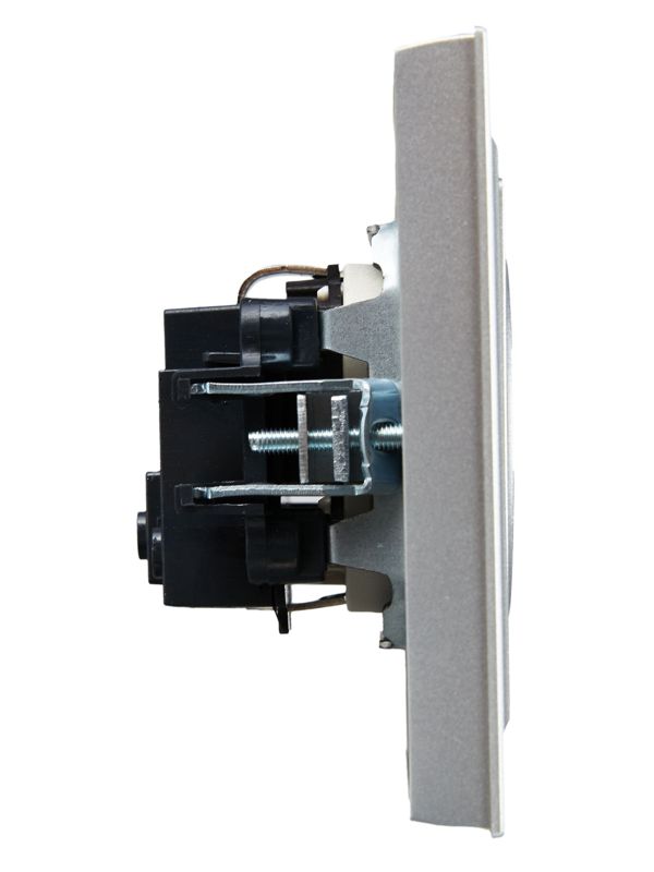 Ключевыми преимуществами данной модели являются номинальный ток 16А, заземление по стандарту SCHUKO для повышенной электробезопасности и матовая поверхность цвета «алюминий», устойчивая к загрязнениям. Устройство выполнено из качественного термопласта, а комбинированное захватное и винтовое крепление обеспечивает простой и надежный монтаж в стандартную монтажную коробку.