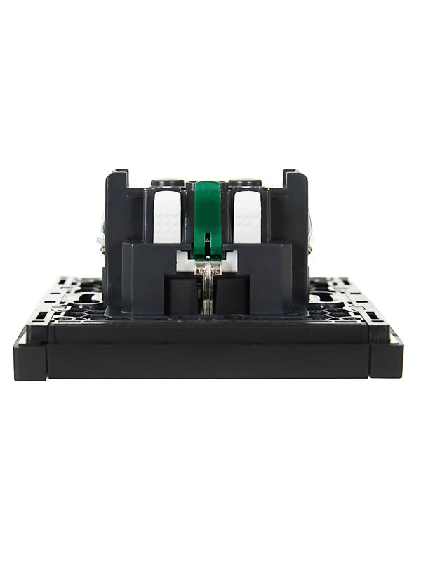 Ключевые преимущества модели включают высококачественный термопласт корпуса и луженую токопроводящую группу для долговечности. Безвинтовое крепление лицевой панели значительно упрощает монтаж и обслуживание: панель легко снимается нажатием. Масштабируемый суппорт дает возможность устанавливать неограниченное количество устройств в ряд с сохранением эстетичного вида.