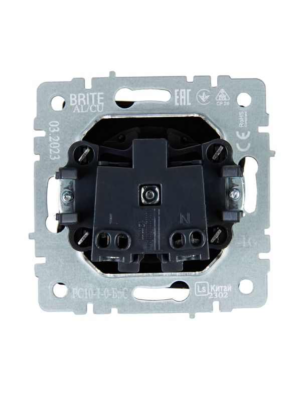 Данная розетка предназначена для скрытого монтажа в стандартные монтажные коробки глубиной от 40 мм. Она рассчитана на номинальный ток 10А и напряжение 230В в однофазной сети. Исполнение без заземляющего контакта и защитных шторок оптимально подходит для установки в сухих помещениях — спальнях, гостиных, офисах — обеспечивая степень защиты IP20.