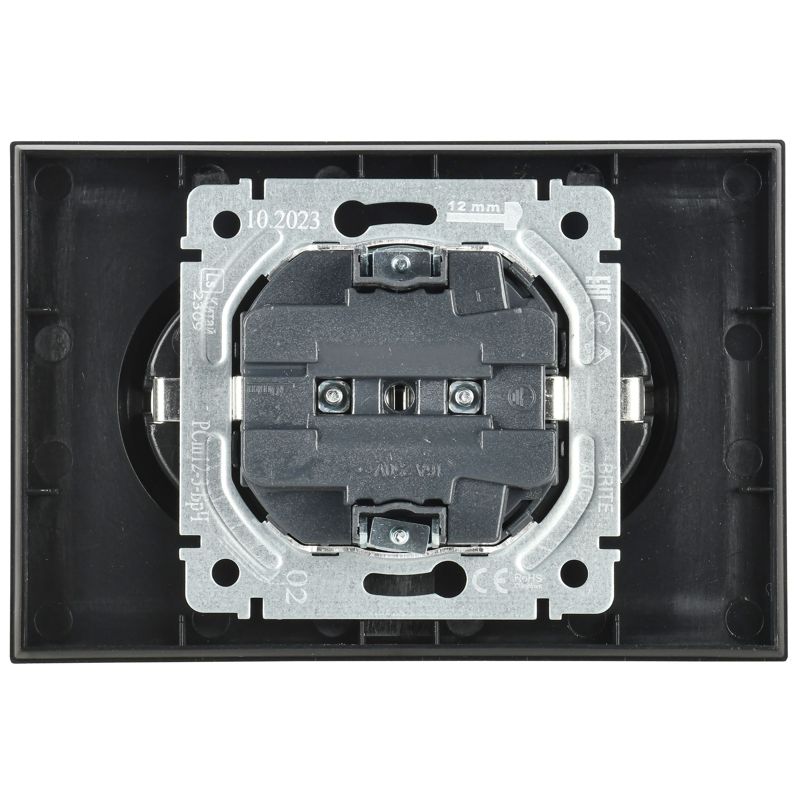 Ключевыми преимуществами данной модели являются номинальный ток 16А и напряжение 230В, что обеспечивает безопасное подключение мощных устройств. Розетка оснащена заземляющим контактом стандарта SCHUKO и защитными шторками, предотвращающими случайное прикосновение к токоведущим частям, что особенно важно для семей с детьми. Прочный термопластовый корпус с матовой черной поверхностью устойчив к износу и гармонично вписывается в современные стили оформления.