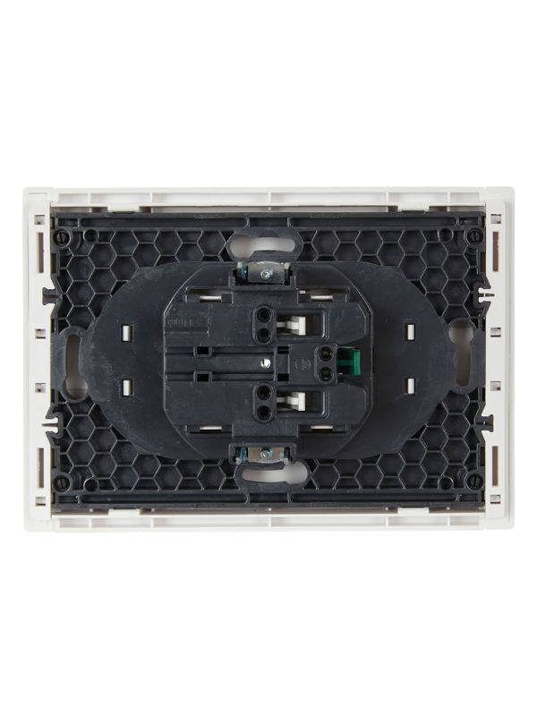 Ключевыми преимуществами данной модели являются безвинтовое крепление лицевой панели, которое упрощает монтаж и обслуживание, и масштабируемый суппорт. Это позволяет собирать бесшовные линейные композиции из нескольких устройств серии FORTE&PIANO. Зажимные контакты обеспечивают быстрое и надежное подключение проводников, а луженая токопроводящая группа гарантирует долговечность и стабильный контакт.