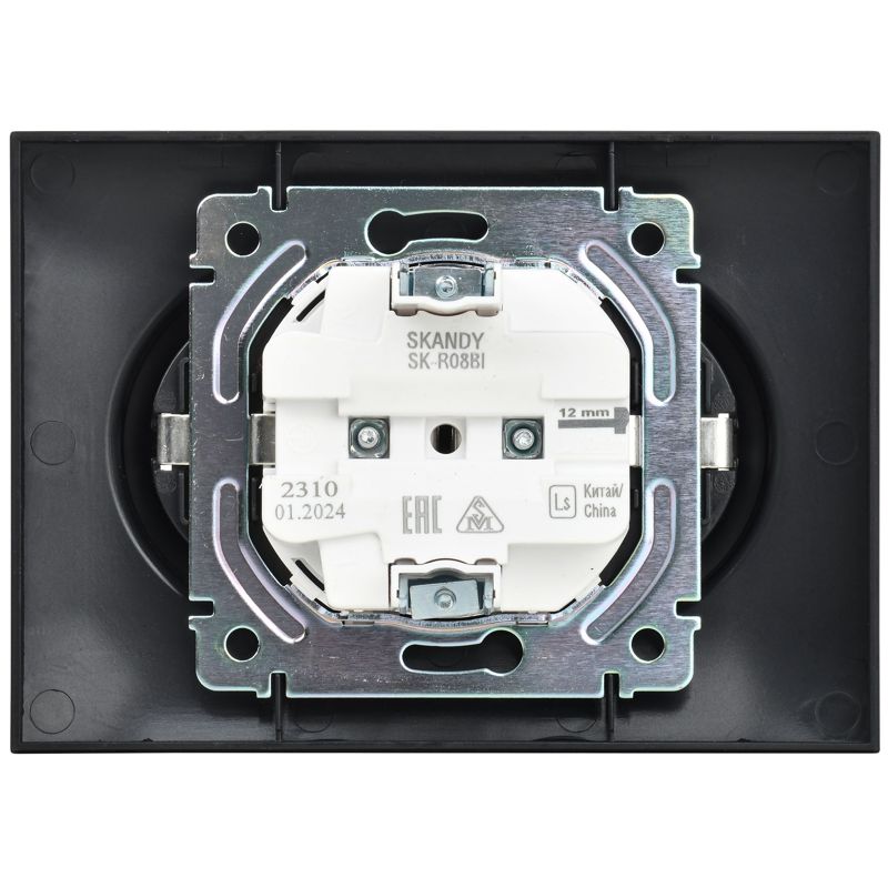 Розетка 2-м SKANDY 16А с заземл. без защ. шторок в сборе SK-R08Bl черн