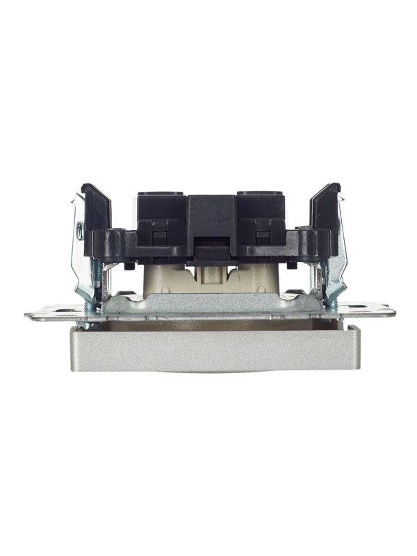 Розетка выполнена в популярном цвете "алюминий", который легко интегрируется в большинство интерьерных решений. Степень защиты IP20 указывает на ее предназначение для использования в обычных условиях внутренних помещений.