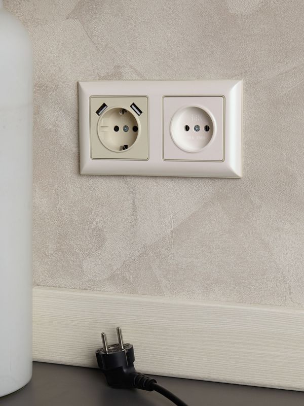 Ключевые преимущества этой модели включают универсальность благодаря встроенному USB-портам, повышенную безопасность и надежность механизма, выполненного из качественного термопласта. Элегантный матовый корпус бежевого цвета гармонично впишется в интерьеры, оформленные в теплых тонах. Широкие монтажные лапки и винтовые клеммы обеспечивают простой и надежный монтаж в стандартную монтажную коробку.