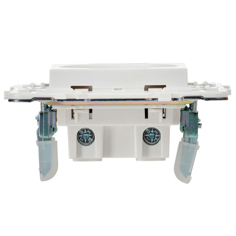 Ключевые преимущества модели включают высококачественный корпус из ударопрочного поликарбоната и луженую токопроводящую группу для увеличенного срока службы. Винтовые клеммы гарантируют надежную фиксацию проводников, а двойной изолированный суппорт с защитной накладкой повышает безопасность во время монтажа. Быстрая фиксация рамки на клипсах упрощает установку и обслуживание.
