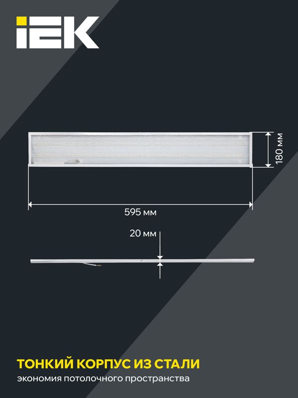 Ключевые преимущества: встроенный драйвер, корпус из стали с защитой IP20 и универсальный белый цвет. Возможность работы в аварийном режиме с блоком БАП41 (приобретается отдельно). Габариты 1200х180х20 мм обеспечивают компактность при высокой светоотдаче.