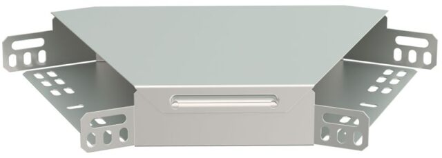 Ключевое преимущество угла — его исполнение из высококачественной стали с горячим цинкованием по методу Сендзимира. Защитный слой цинка 10-20 мкм гарантирует исключительную коррозионную стойкость в различных условиях эксплуатации. Встроенный интегрированный соединитель обеспечивает прочный и ровный стык с лотком, а внутренний радиус 300 мм способствует безопасному изгибу кабелей без риска повреждения изоляции.