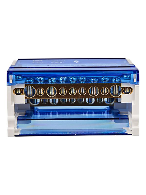 Преимущества модели: 11 клемм на полюс, расчетный ток до 125 А, изолированные шины из латуни и самозатухающий пластик корпуса. Прозрачная крышка обеспечивает визуальный контроль соединений без необходимости демонтажа.