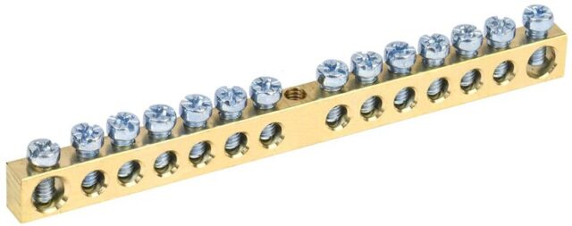 Ключевые преимущества шины — изготовление из высококачественной латуни, гарантирующей отличную электропроводность и коррозионную стойкость. Компактные размеры (6х9 мм) и ширина 103 мм позволяют эффективно использовать пространство в щите. Для надежного контакта с многожильными медными проводами рекомендуется использовать наконечники-гильзы.